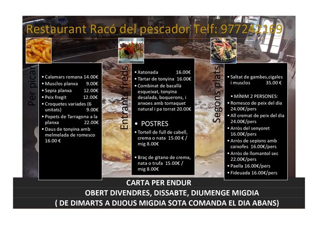 La espineta és una recepta que es fa per la celebració de les festes de Santa Tecla; antigament els pescadors y treballadors del port de Tarragona, que la majoria eren de la part Alta, elaboraven aquest plat perquè era molt econòmic. Es feia ja que entràvem a la tardor i venien les pluges, i ja apetia més un plat calent. Amb les pluges els proletariat sortien a buscar cargols, era tradició, i a totes les cases es tenia tonyina salada o espineta. Amb tots aquests aliments podríem dir, que es va elaborar aquesta recepta tan típica que tenim a Tarragona, que s’ha anat transferint de generació en generació. Recepta: 2 kg de espineta 1.5 kg de patates 2 kg de caragolins 2 kg de cebes Sal , oli, vi blanc, pimentó vermell, 1 bitxo Comencem dessalant l’espineta durant un o dos dies, anem canviant l’aigua. La tallem a trossets, la posem a la casolà amb oli abundant mentre la fem rostir. Tallem la ceba a juliana i la afegim a la cassola, quan ho tenim tot a mig rostir afegim el bitxo i dos cullerades de pimentó vermell, remenem be i li bolquem mitja ampolla de vi blanc i juntament les patates prèviament tallades i els cargols. Deixem fer “xup xup” una bona estona i afegim aigua fins cobrir-ho tot i deixem un altre vegada que faci “xup xup” una mitja hora a foc lent. Provem de sal i ja tenim el plat.